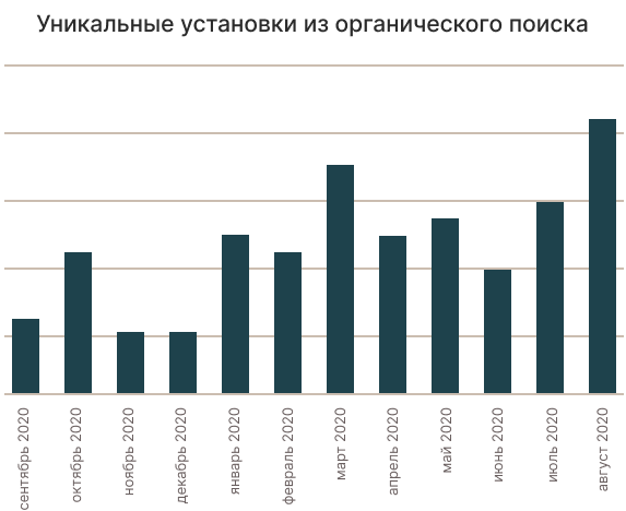 В эти поля мы вписывали собранные запросы. Анализировали полученные позиции и заменяли те запросы, которые не попали в ТОП-5. Таким образом, пришли к оптимальному списку запросов, по которому хорошо ранжируется наше приложение и поступают установки.