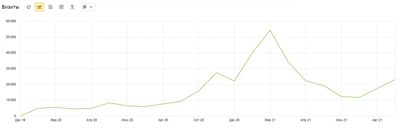 Рост небрендового трафика из поисковых систем за год до 50000 посетителей в месяц
