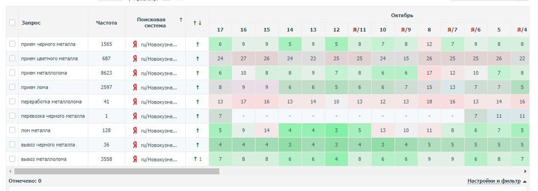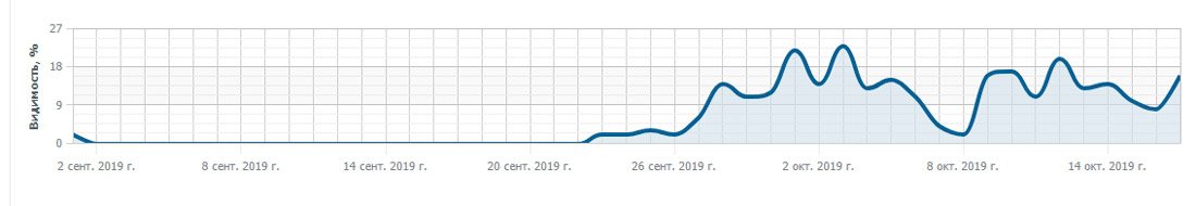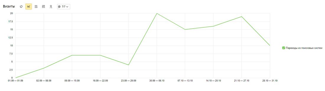 Выполнив этот необходимый минимум, мы получили первые результаты. Уже к концу сентября сайт получил хорошие позиции по некоторым целевым запросам. Причём половина из этих запросов является высокочастотными для региона продвижения.