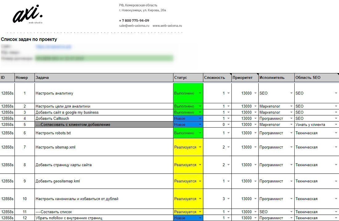 Работа над поисковым продвижением сайта началась в сентябре 2019 года. Для начала мы провели ШОК-аудит сайта и составили список задач для реализации. В него вошли задачи, которые относятся к внутренней и внешней оптимизации, работе с контентом и юзабилити.