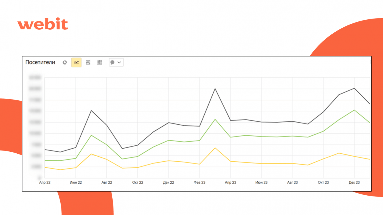На графике небрендовый трафик из поисковых систем апрель 2022 г – январь 2024 г.
