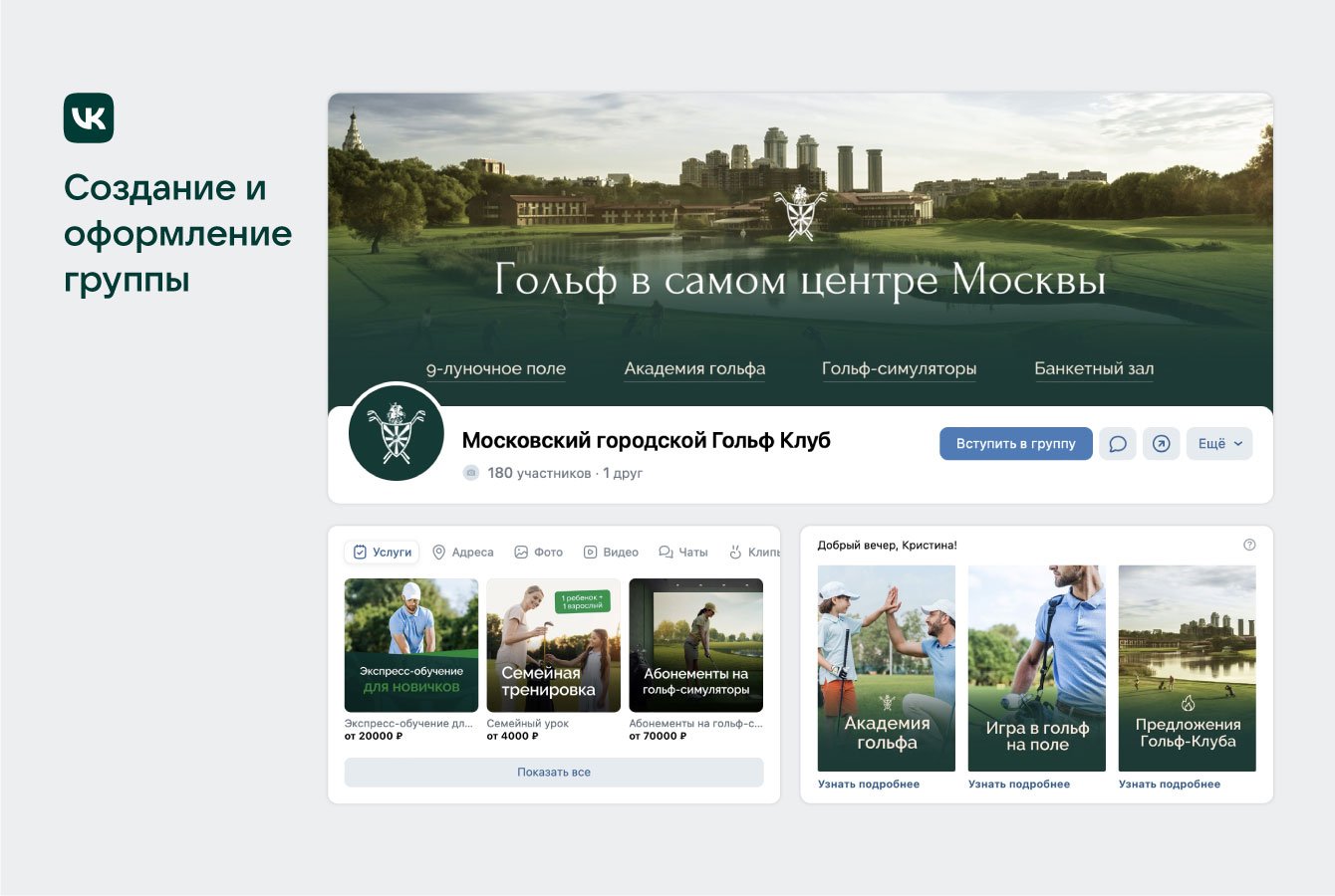 2. Создание полезного для всех контента: постинг информативных постов о мире гольфа для уже существующих клиентов, постинг рекламных постов с услугами клуба для подписчиков аккаунтов, не являющихся клиентами клуба, постинг коротких обучающих роликов в Reels и ВК-клипах, а также полноценных минутных видео об услугах клуба для пользователей, еще не являющихся подписчиками