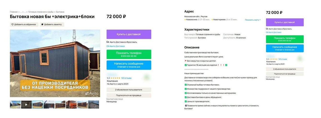 На старте проекта мы проанализировали аккаунты конкурентов: производителей и продавцов бытовок и хозпомещений с рейтингом на Авито не ниже 4.0.