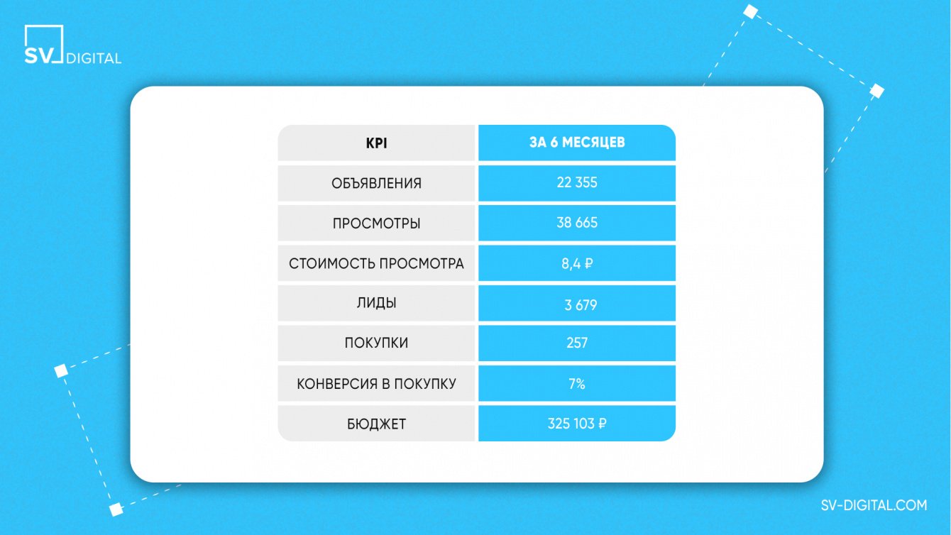 По словам заказчика, не менее 3 201 лид был целевым (87%). Конверсия в покупку составила 7%: заказчик заключил 258 договоров. При среднем чеке 55 000 рублей доход заказчика составил более 14,2 млн рублей.