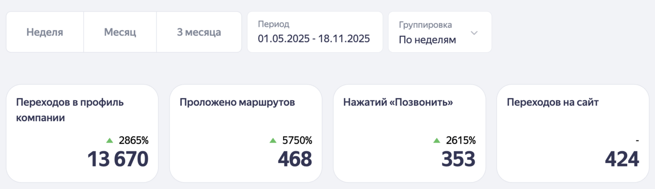«После обновления карточки и запуска стратегии люди буквально начали приходить сами. Видно, что мы стали заметнее, и это сразу отразилось на записях»