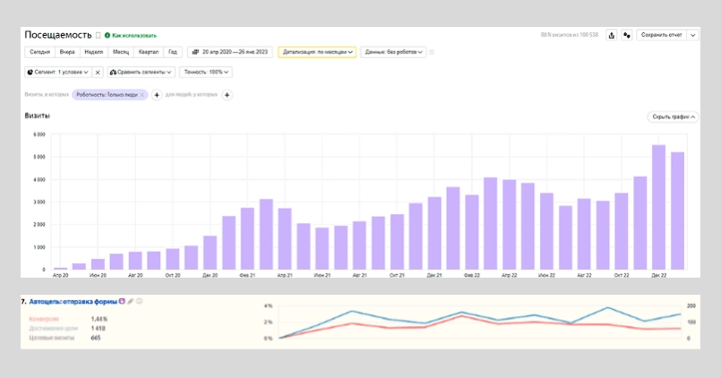 - За 2 года увеличили посещаемость сайта со 100 визитов в месяц до 5500 визитов