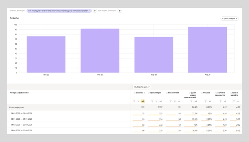 До начала работы трафик из поисковых систем не превышал 100 визитов в месяц.