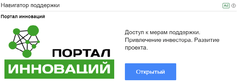 Аудитория для показа рекламы на поиске Яндекс и Google была подобрана на основе поисковых запросов, по которым осуществлялся поиск вариантов поддержки инновационных проектов или общую поддержку бизнеса и стартапов.