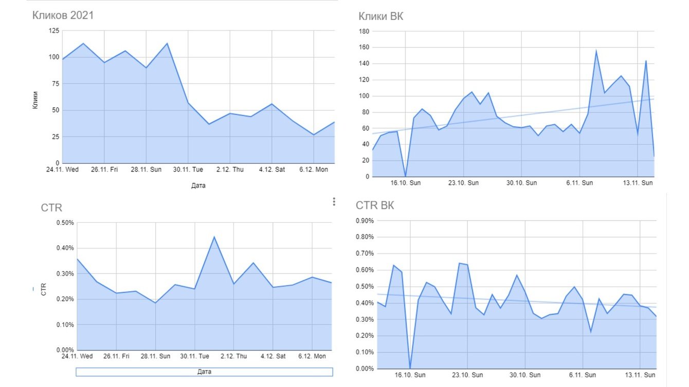 Не смотря на хороший старт в 2021 году по охватам в начале кампании, после оптимизации удалось снизить цену. Но СТР поднять не удалось, что в свою очередь привело к концу кампании к падению охватов.