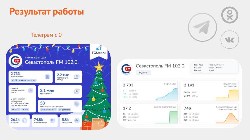 В сообществах мне удалось организовать высокий уровень вовлеченности и создать активное коммьюнити подписчиков, большинство из которых настоящие адвокаты бренда Севастополь FM. Это подтверждает их обратная связь.