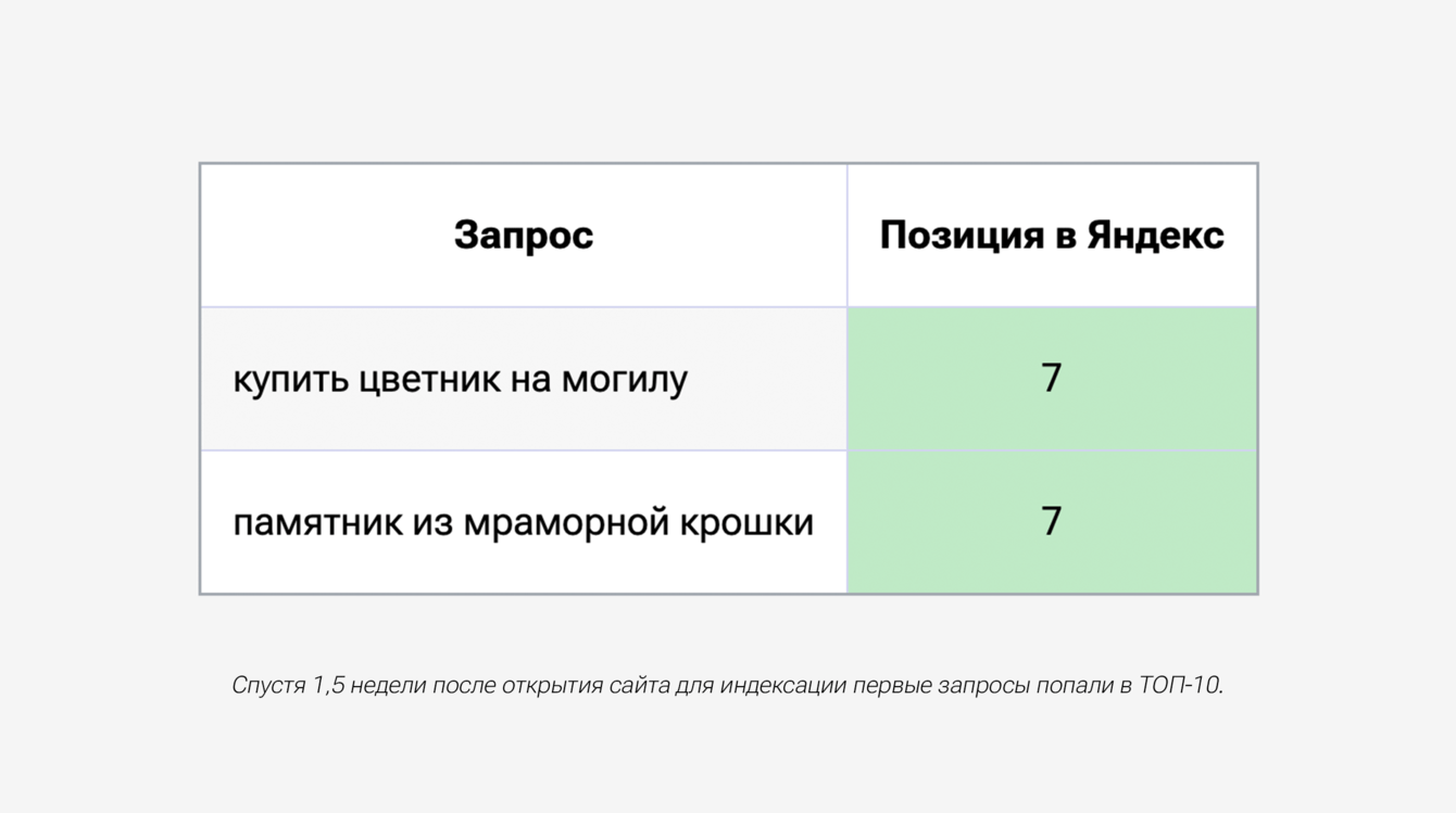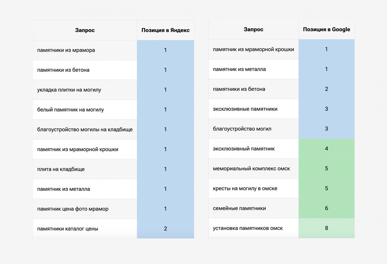 Регулярный анализ конкурентов и семантического ядра позволяет находить новые точки роста и пути привлечения клиентов, например, востребованной оказалась услуга по уборке на могилах к родительскому дню.