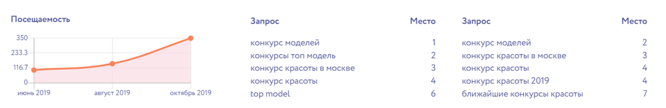 I-TOPMODEL — конкурс красоты, который проводится в Москве. Необходимо было обеспечить приток участниц и спонсоров конкурса моделей в Москве, а также обеспечить топ-10 по общим запросам вроде “конкурс красоты”.