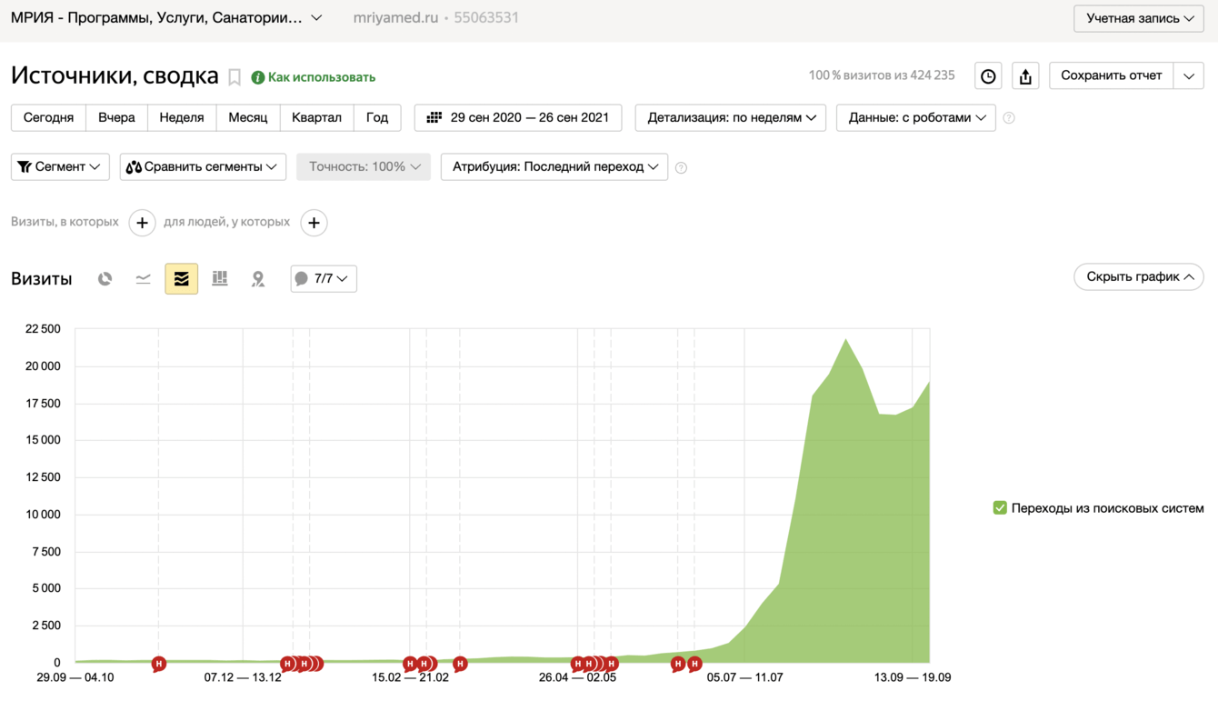 2) Информационное продвижение - написание тематических статей, которые отражают программы медицинского центра. Основной упор делался на "реабилитация от коронавируса".