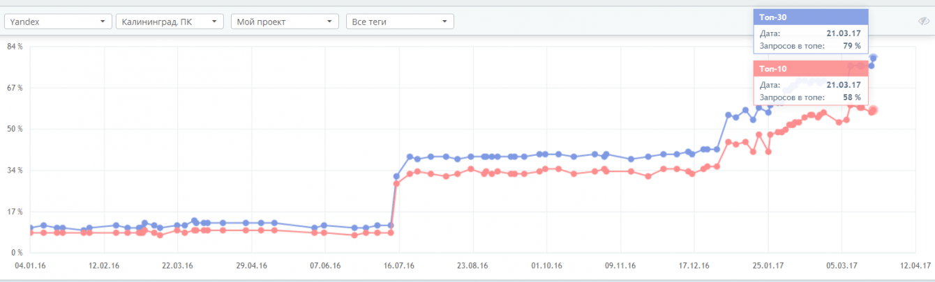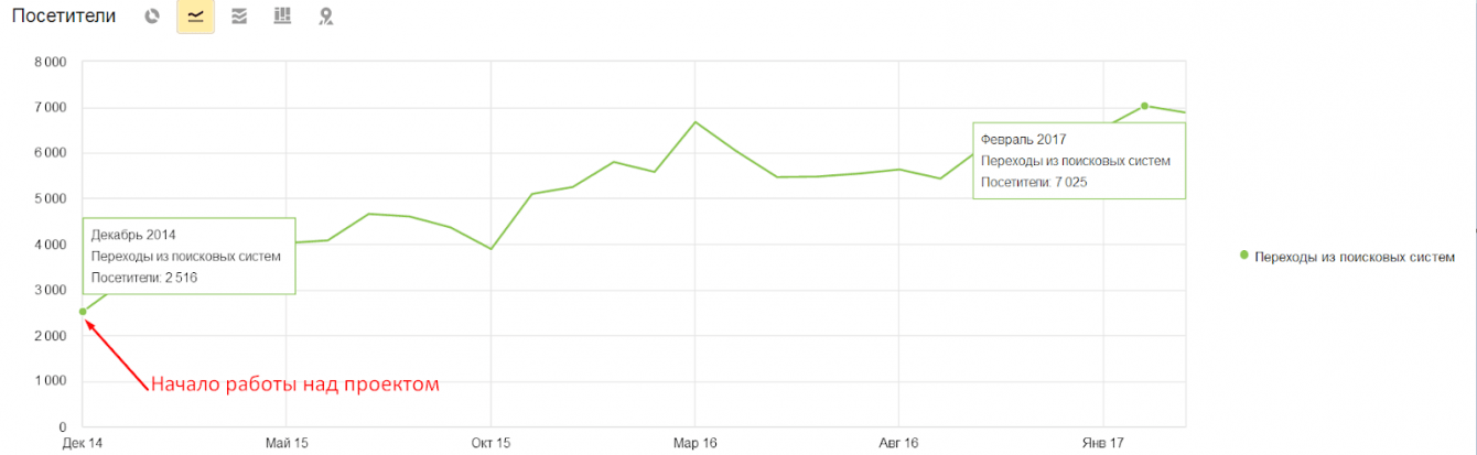 - создание новых посадочных в первые два месяца продвижения (включая работу с метаданными, исправление вхождений в хлебные крошки и текст);