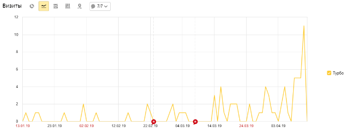 Переходов на сайт с Турбо страниц не так много, но технология новая, все еще впереди.