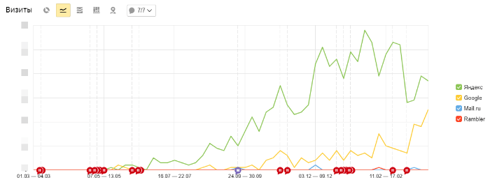2. Увеличили трафик в 5 раз из ПС Яндекс и в 3,5 раза из Google