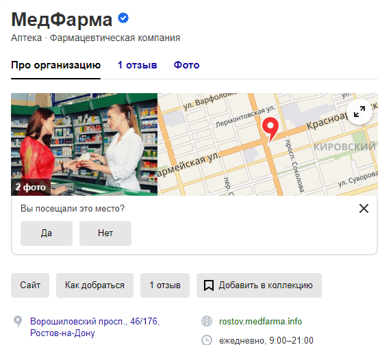 Карточка в Яндекс Справочнике