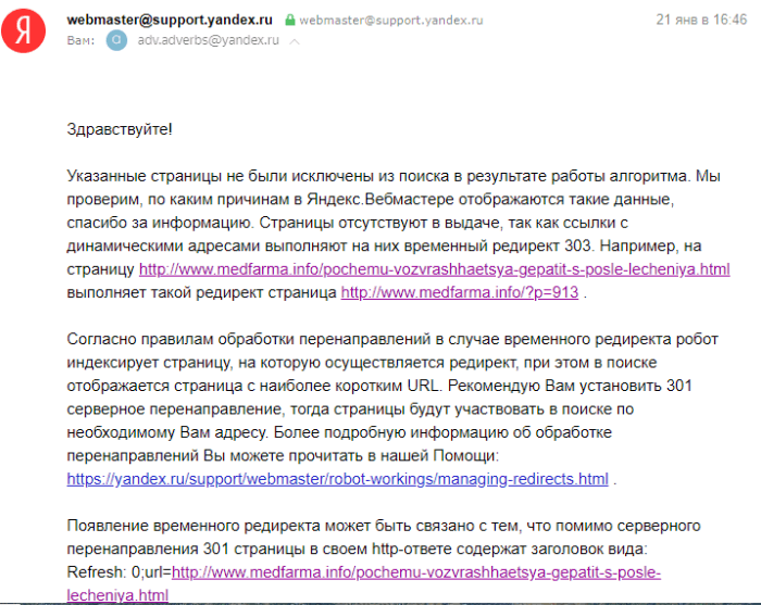 Проверка настроек сайта и файлов htaccess не дала результата. Да и третий проект чувствует себя вполне хорошо. Правда лежит он на другом хостинге. Переписка с хостером также не дала результатов. Тогда мы решили пойти другим путем. Просто закрыли от индексации страницы с параметром Disallow: /?p=*