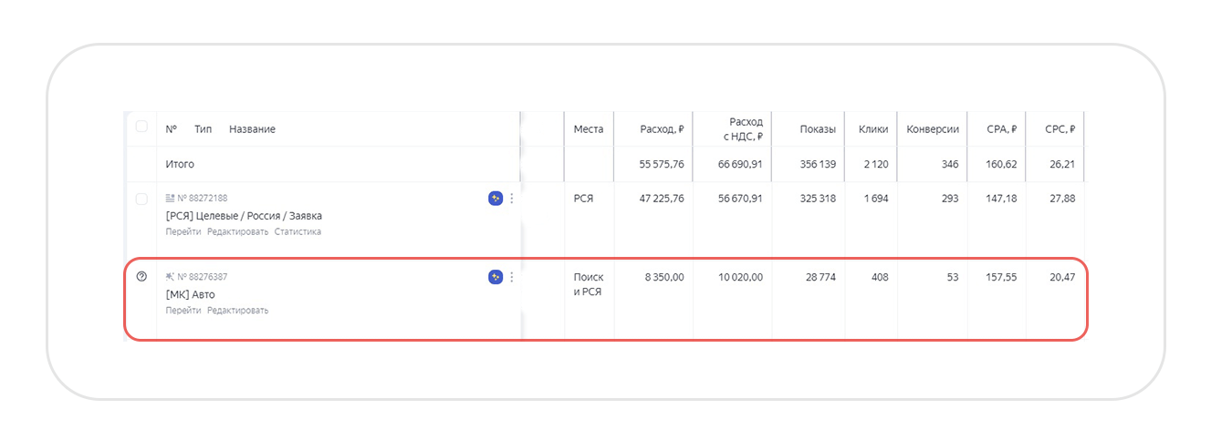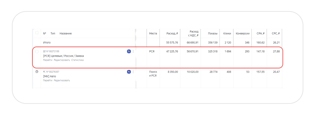 Мастер кампаний — автоматический формат, который объединяет поисковые и РСЯ кампании. Отображается в поиске и сетях и эффективно распределяет деньги на каждое направление. Кроме того, помогает быстро анализировать эффективность работы заголовков, текстов и креативов.