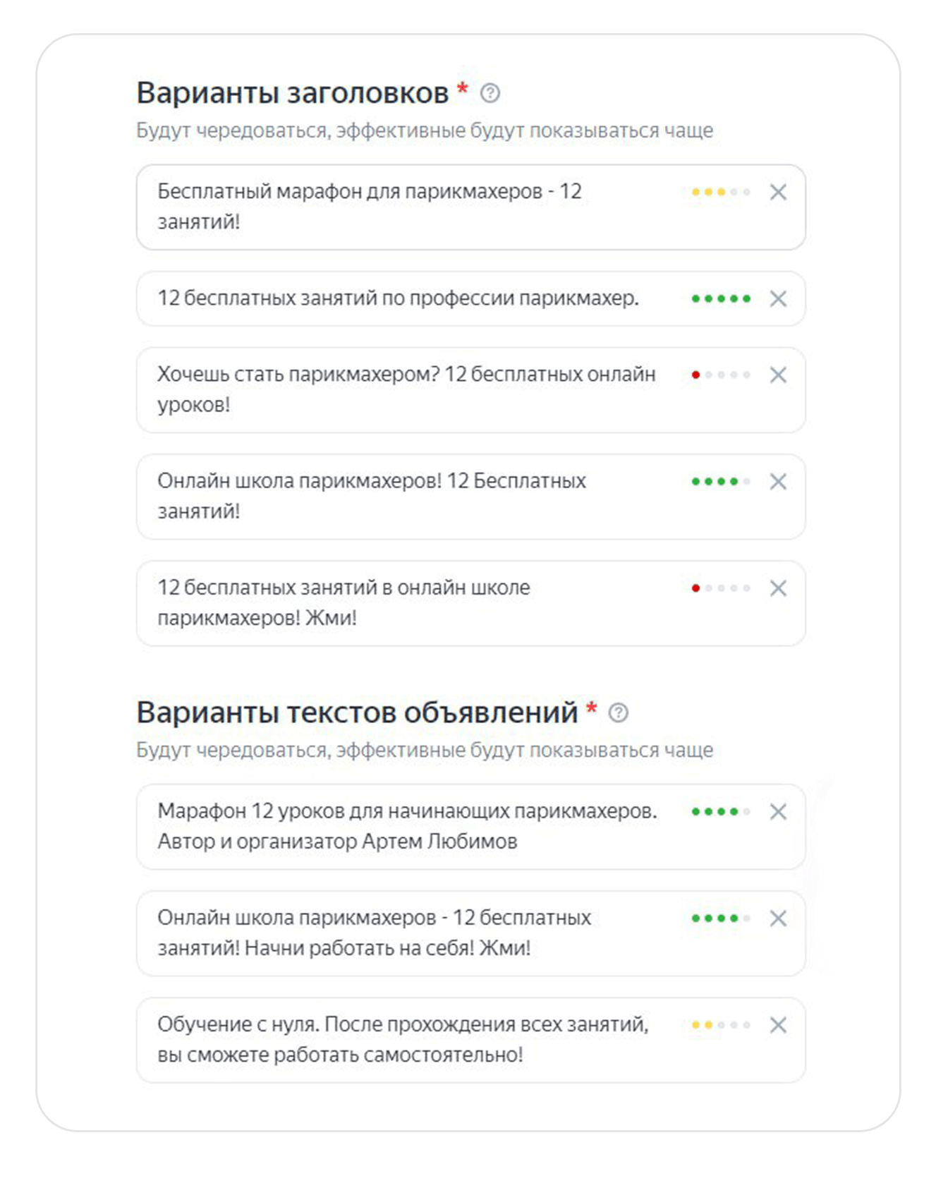 Эффективность работы заголовков и текстов в кабинете «Мастер кампаний»: