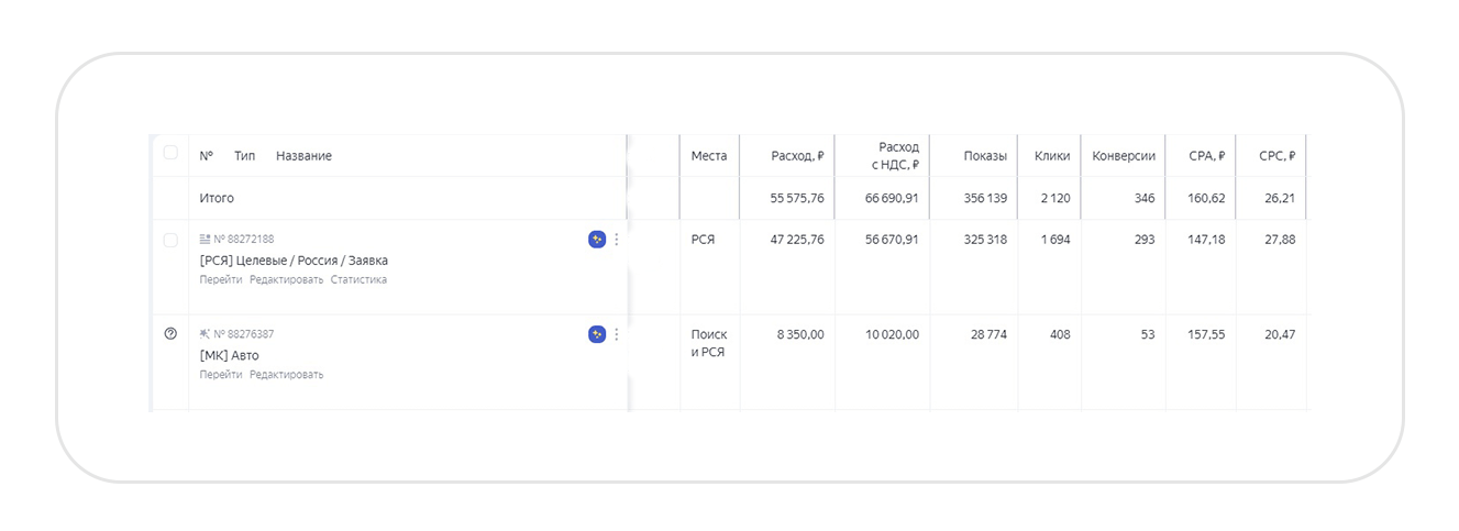 Запустили одновременно два вида рекламных кампаний: сетевую и мастер кампаний, чтобы проверить эффективность каждой и выбрать наиболее подходящий формат.