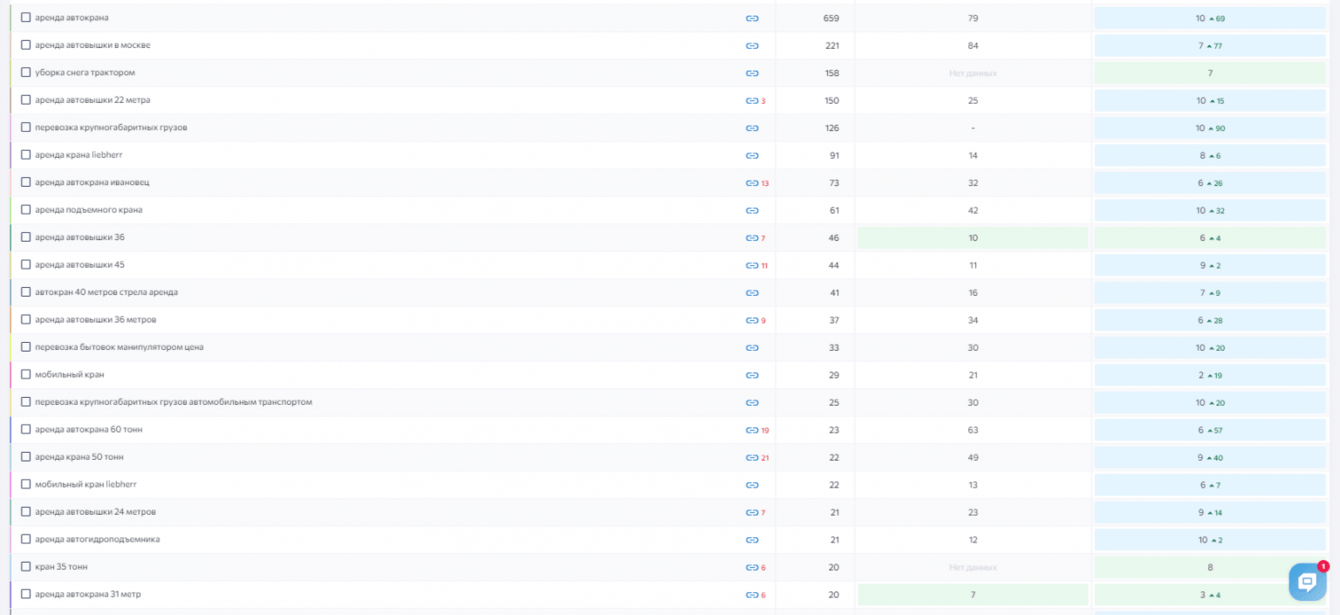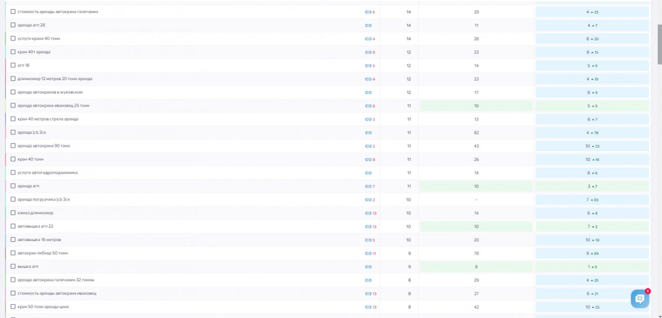 Проект пришел к нам еще молодым: домен был зарегистрирован всего несколько месяцев назад, хотя в выдаче уже давно плотно засели авторитетные сайты конкурентов. С технической точки зрения сайт уже был в хорошем состоянии: отличная скорость загрузки и небольшое количество мешающих корректному ранжирования ошибок. Однако, с точки зрения текстовой оптимизации и контента мы никак не могли успешно конкурировать: на сайте было лишь несколько неинформативных каталогов с, также неинформативными карточками спецтехники. Позиции по таким важным группам запросов как “Аренда автовышки ” и “Аренда автокранов” были далеко за пределами ТОП-100.