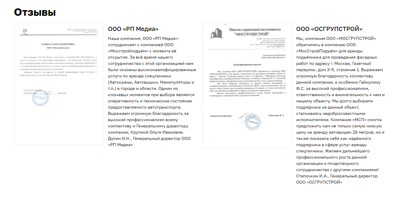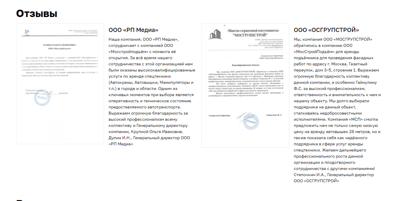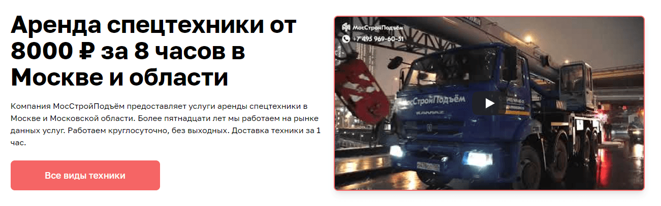 МосСтройПодъем – компания, предоставляющая в аренду спецтехнику в Москве и Московской области. Необходимо было повысить целевую посещаемость по группам запросов “Аренда автовышек”, “Аренда автокрана”, “Аренда манипулятора” и других.