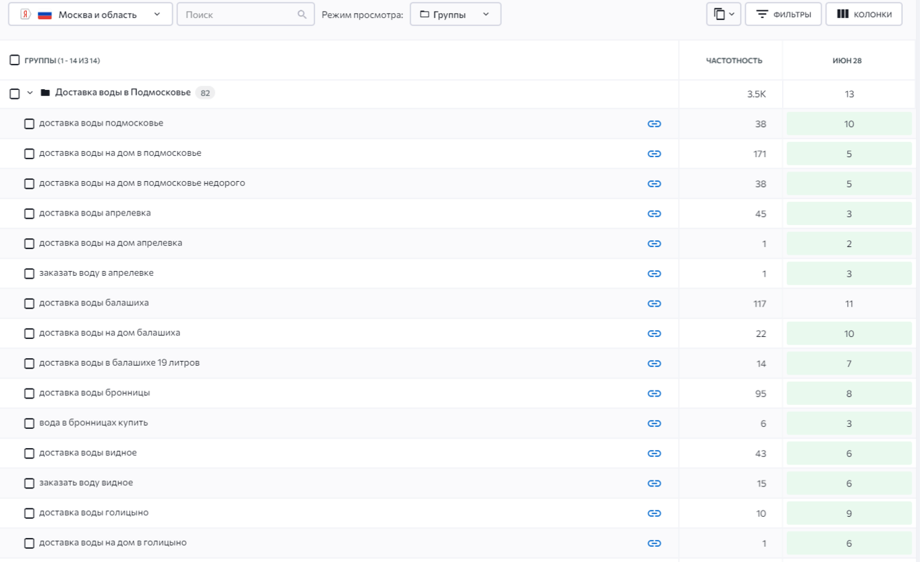 Приоритетными направлениями в работе для поисковой системы Яндекс было выбрано продвижение запросов по двум основным страницам: главной и страницы по доставке воды 19 литров.