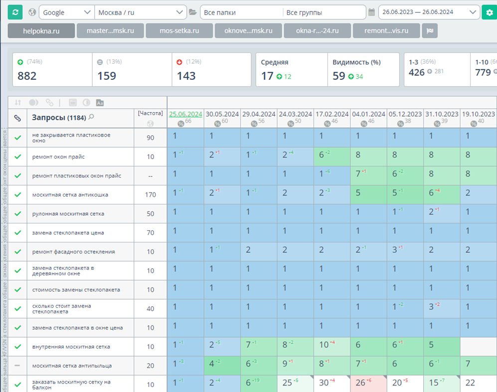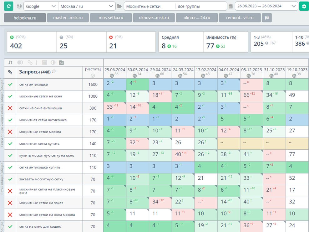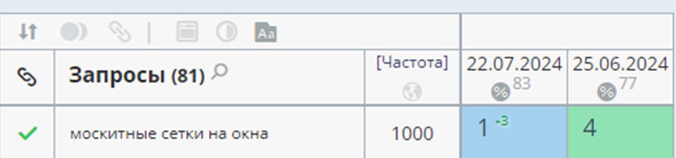 Видимость по тематическому кластеру «Москитные сетки» — с 40% до 86%.