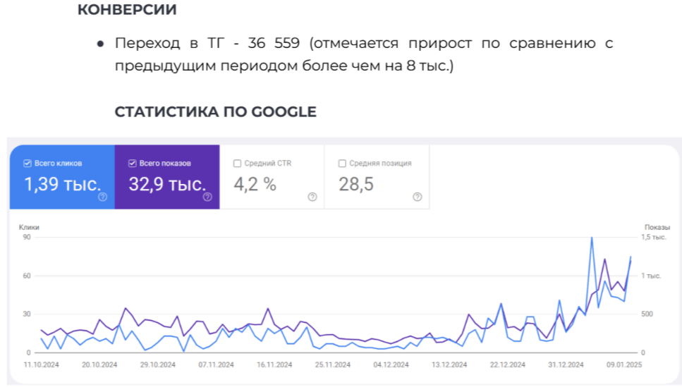 2. Увеличение трафика: За период продвижения органический трафик на сайт увеличился более чем на 120%, что подтверждает эффективность выбранной стратегии.