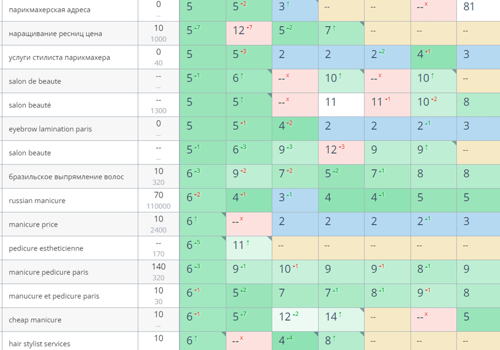 Цель: Улучшение позиций по русскоязычным запросам. Охватить целевую аудиторию из числа российской эмиграции и туристов. Привлечь таким образом новую аудиторию в салон красоты. Основная поисковая система — Google.
