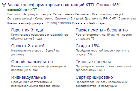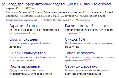 Ключевое слово дублировалось в заголовке, быстрых ссылках с целью повышения кликабельности. Все ссылки в объявлениях ведут на релевантные страницы. Объявления дополнены быстрыми ссылками и уточнениями.