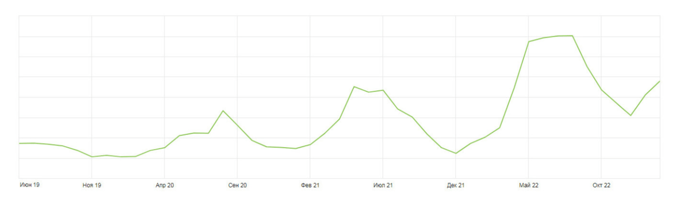 Рост трафика за весь период продвижения (наблюдается значительное повышение посещаемости из поисковых систем в сезон):