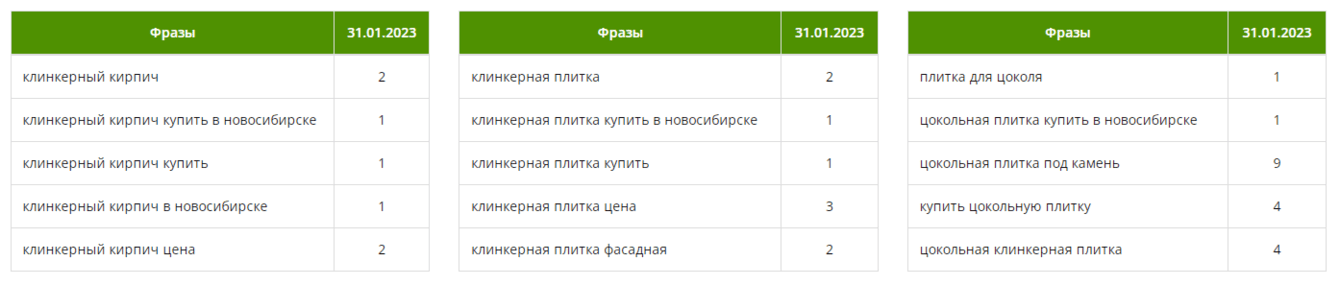 В течение всего периода продвижения проводилось расширение семантического ядра, на основе которого создавались новые посадочные страницы.