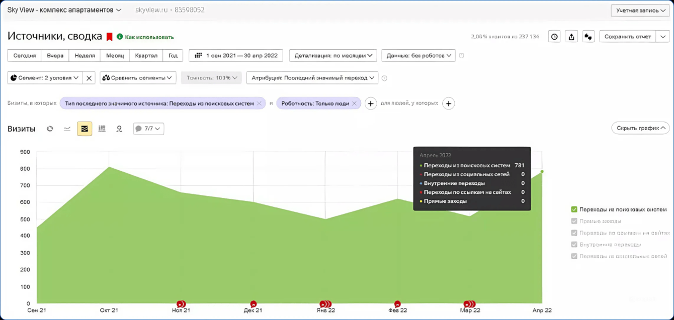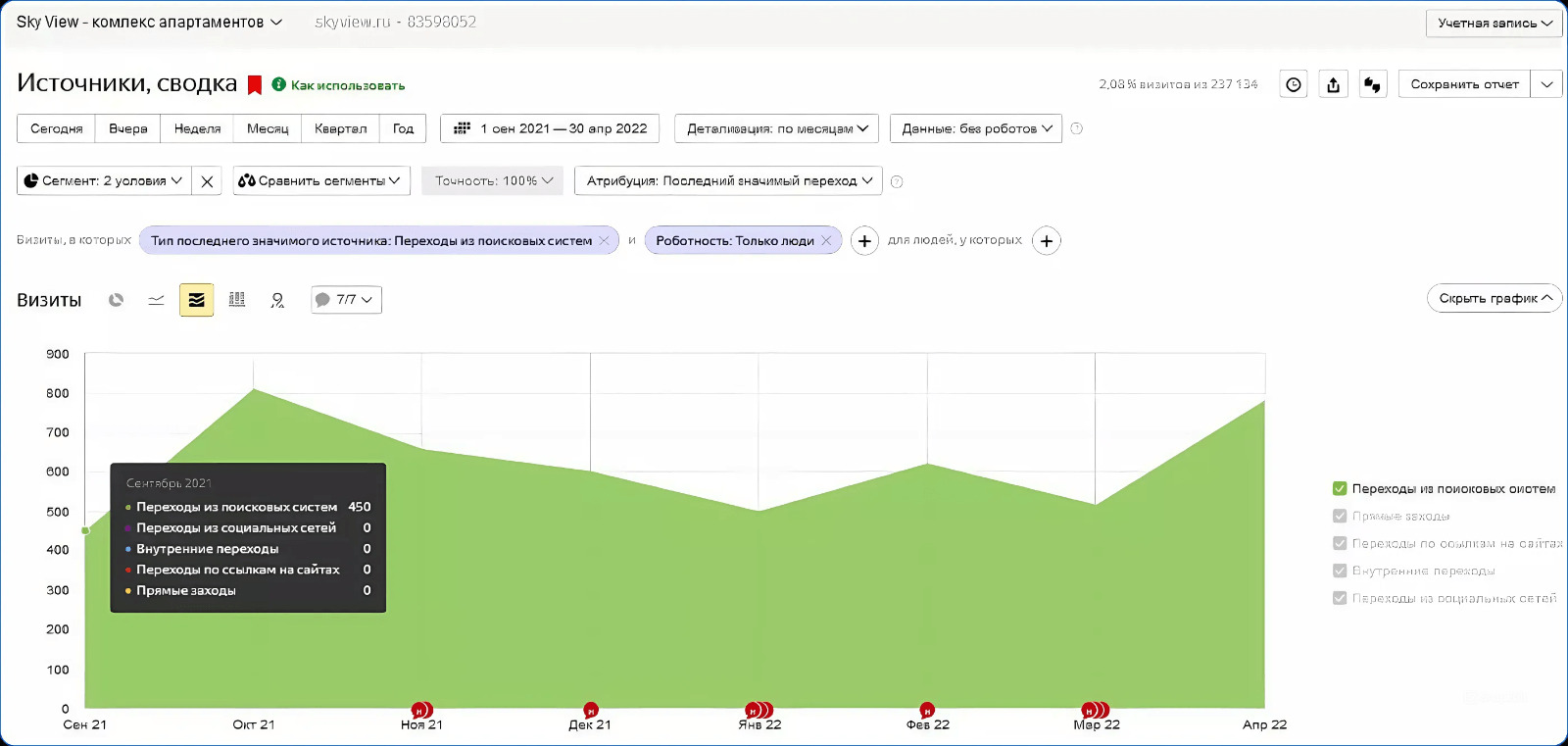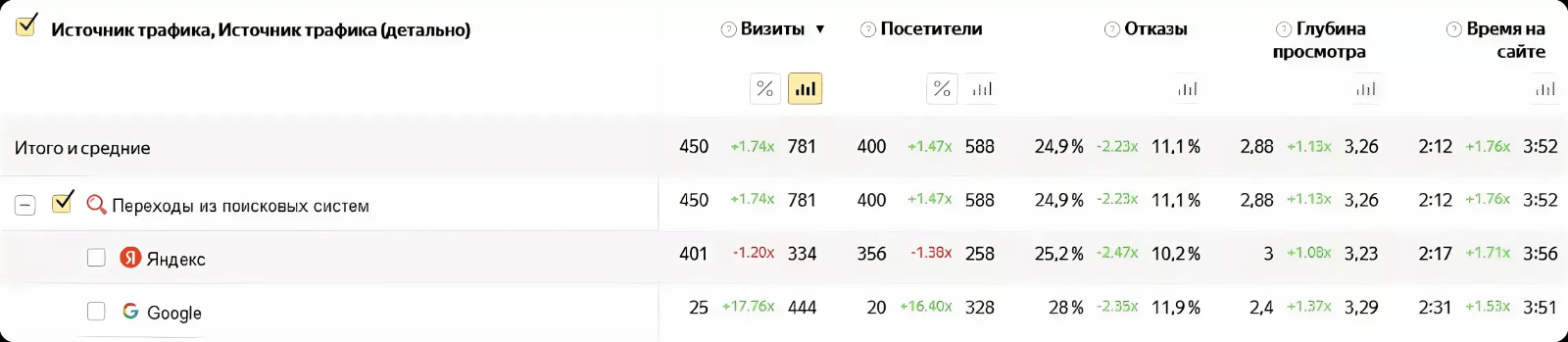 Увеличить ежемесячное количество визитов на сайт из поисковых систем с 451 до 781 — рост в 1,7 раз.