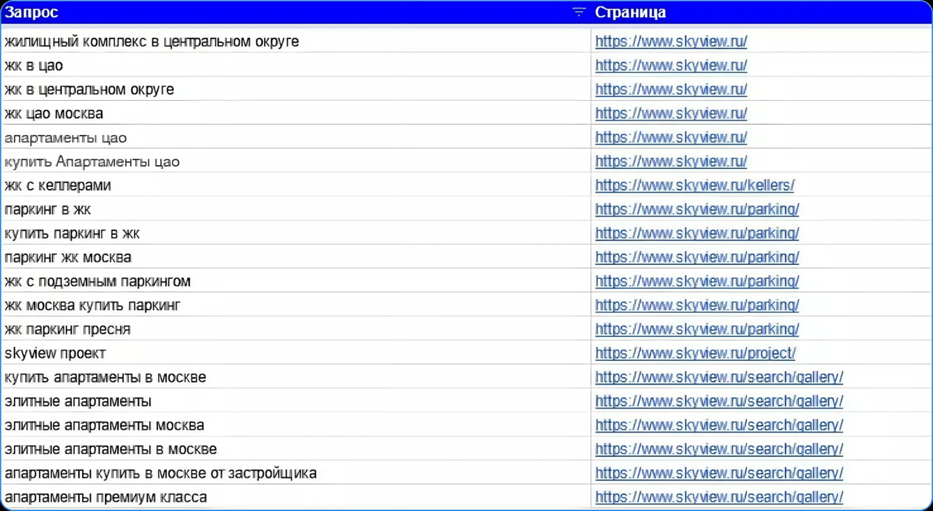 ● Кластеризовали ключевые слова для оптимизации страниц.