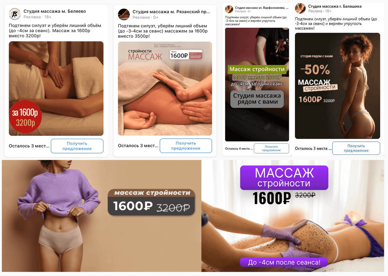 Клипы с процессом массажа дали наименьшую стоимость заявки – важно регулярно обновлять контент, чтобы не терять вовлеченность аудитории.