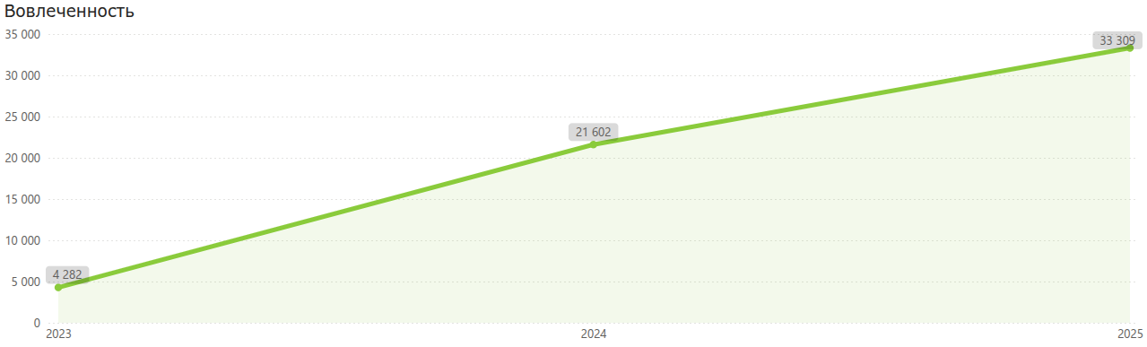 Демонстрирует устойчивую положительную динамику (x7 к базовым значениям) и подтверждает эффективность выбранной контент-стратегии, работы с аудиторией и внедрения новых форматов.