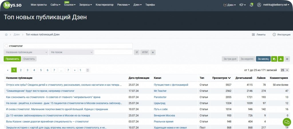 При подборе тем использовали не только аналитику запросов, выдачи и конкурентов, но и сервис Keys.so