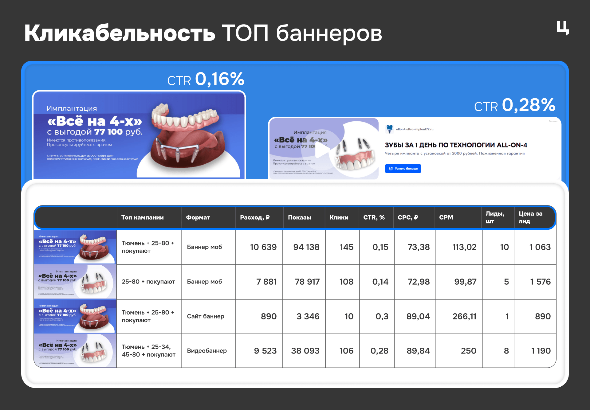 - Лучший видеобаннер принёс 2 лида за 2 752 руб.