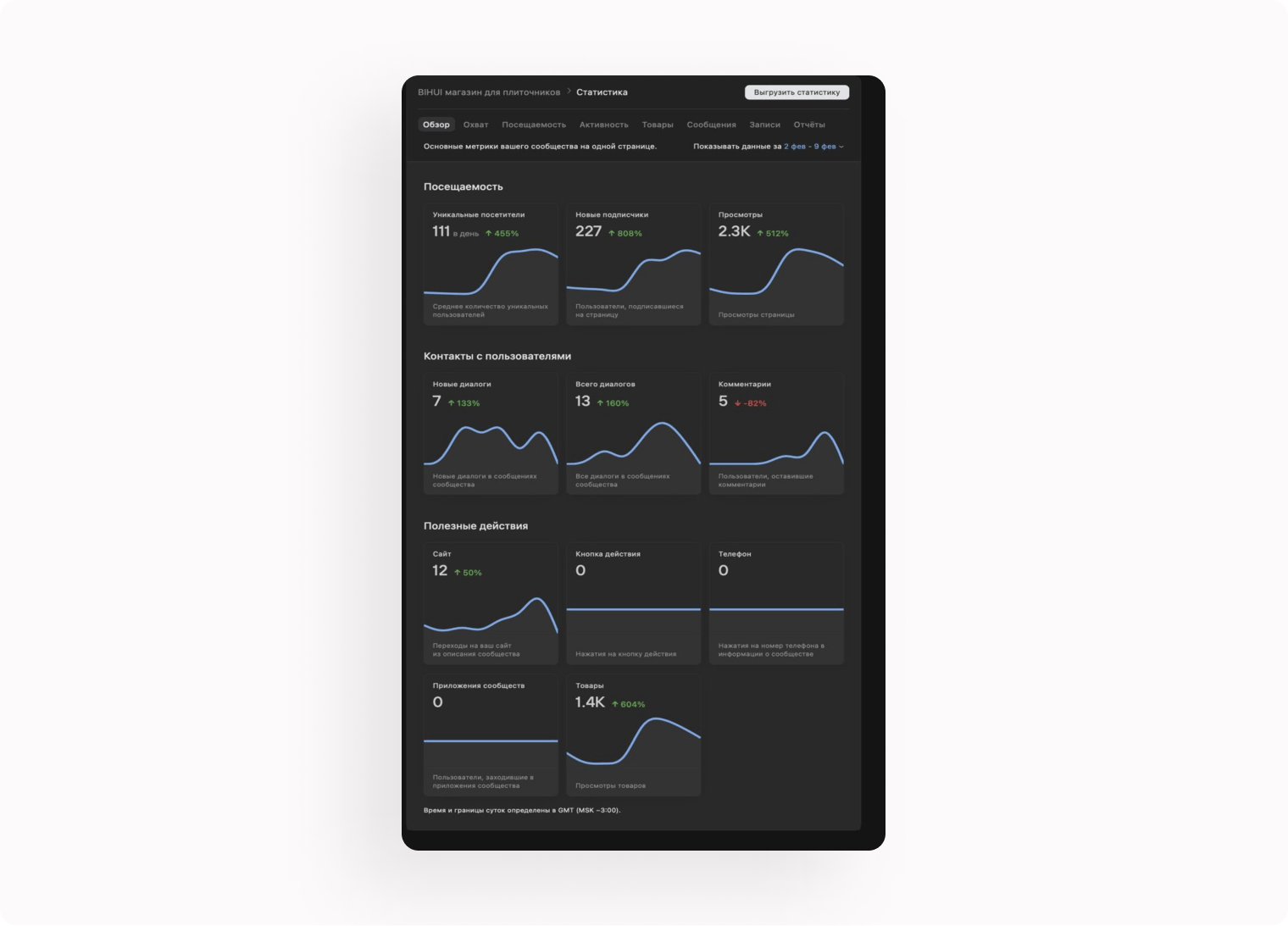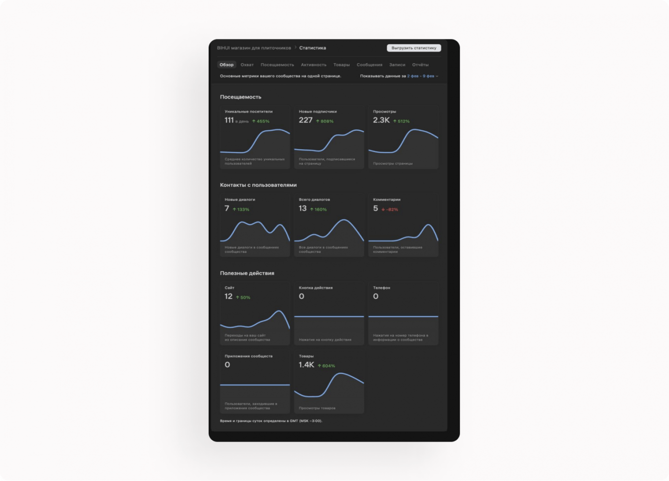 Не все рекламные цели отдавали подробную статистику, и мы отслеживали результативность товарных кампаний внутри самого сообщества через статистику группы, а также по диалогам в сообществе.