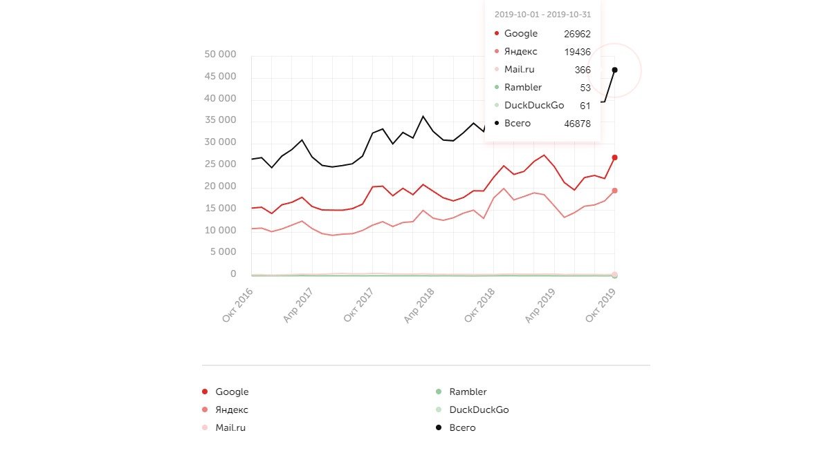 ● Почти 50 000 поискового трафика в октябре 2019 года!