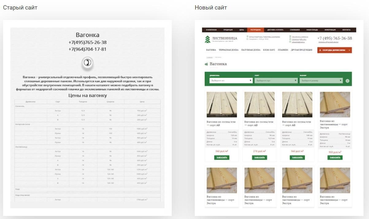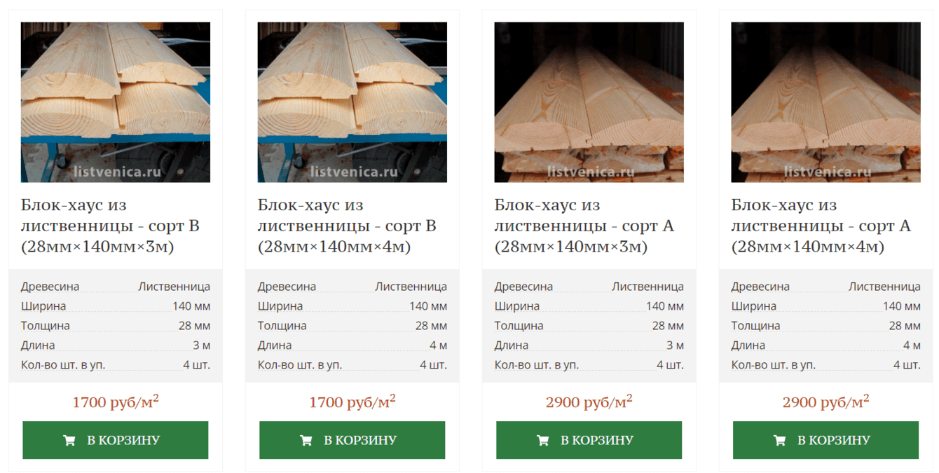 * Добавили рубрикаторы в каталог по виду материала и породе деревьев, например: террасная доска из лиственницы. И еще дополнительно по виду продукции, породе и сорту древесины – террасная доска из лиственницы сорта А и т.п.;
