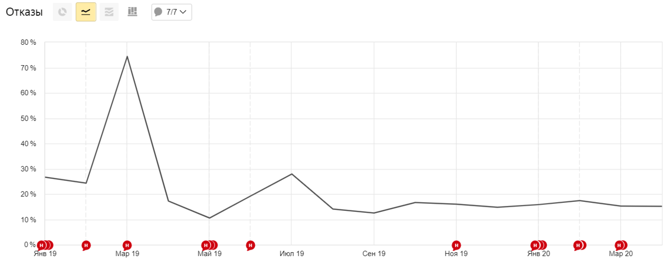 По итогам внедренных изменений можно наблюдать значительное снижение процента отказов у пользователей: