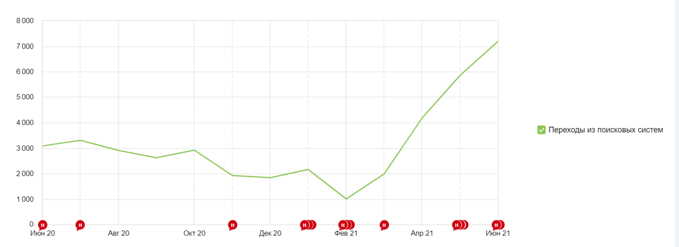 * Рост трафика из поисковых систем составил более чем 2 раза, с 3000 уникальных посетителей в месяц до 6500.