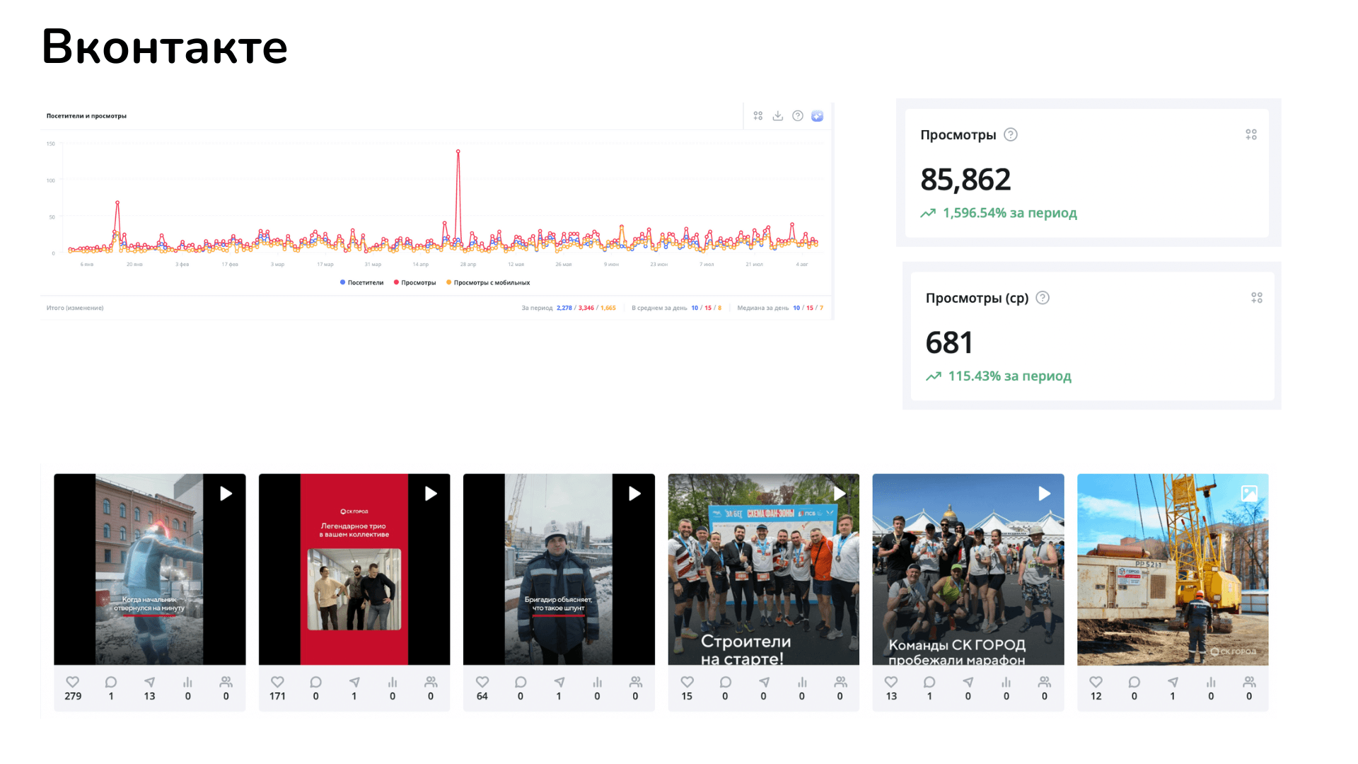 Достигнуты обе цели. Высокие охваты помогли построить привлекательный HR-бренд, а экспертный контент и видео-кейсы укрепили репутацию СК ГОРОД как лидера рынка.