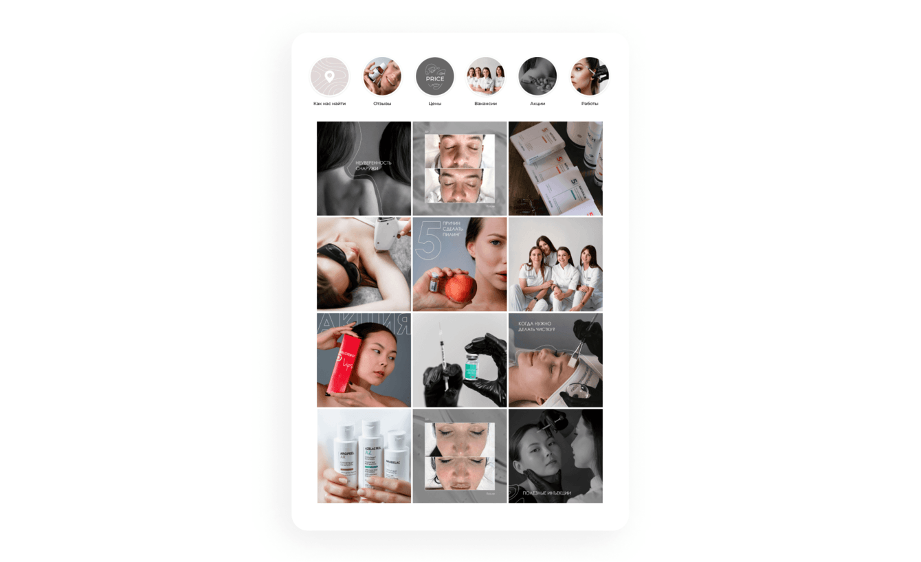 Создание уникального контента, который будет интересен целевой аудитории. Фотографии работ мастеров, видео обзоры процедур, истории клиентов, информационные посты о новинках и акциях.