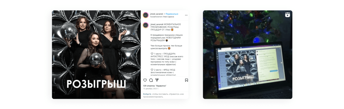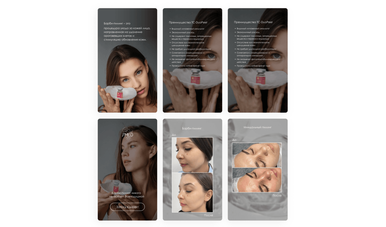 Кроме демонстрации услуг студии и работ «До/после», мы делали интерактивы, анонсировали скидки.
