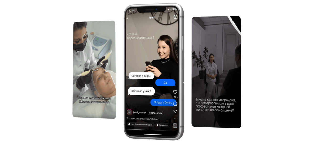 Reels в профиле были посвящены непосредственно услугам студии J’Med.