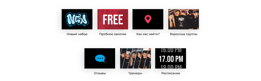 Для более удобного восприятия и поиска информации мы создали обложки для каждого блока «Меню», а также обложки для «Сюжетов».